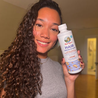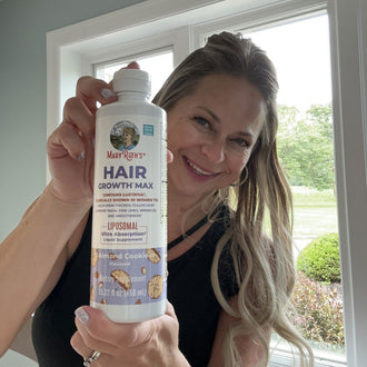 Give your hair and skin extra support with the Hair Growth Max Liposomal! This delicious, ultra absorption formula combines a blend of herbs and oils as well as Lustriva®, clinically shown to help grow thicker, fuller hair in women, while also improving facial lines, wrinkles, and skin smoothness.